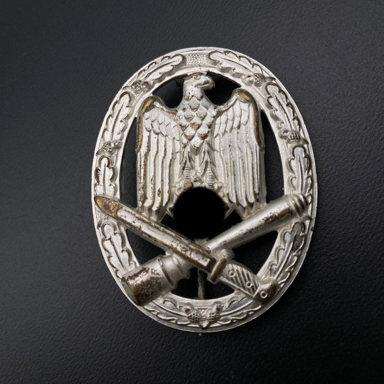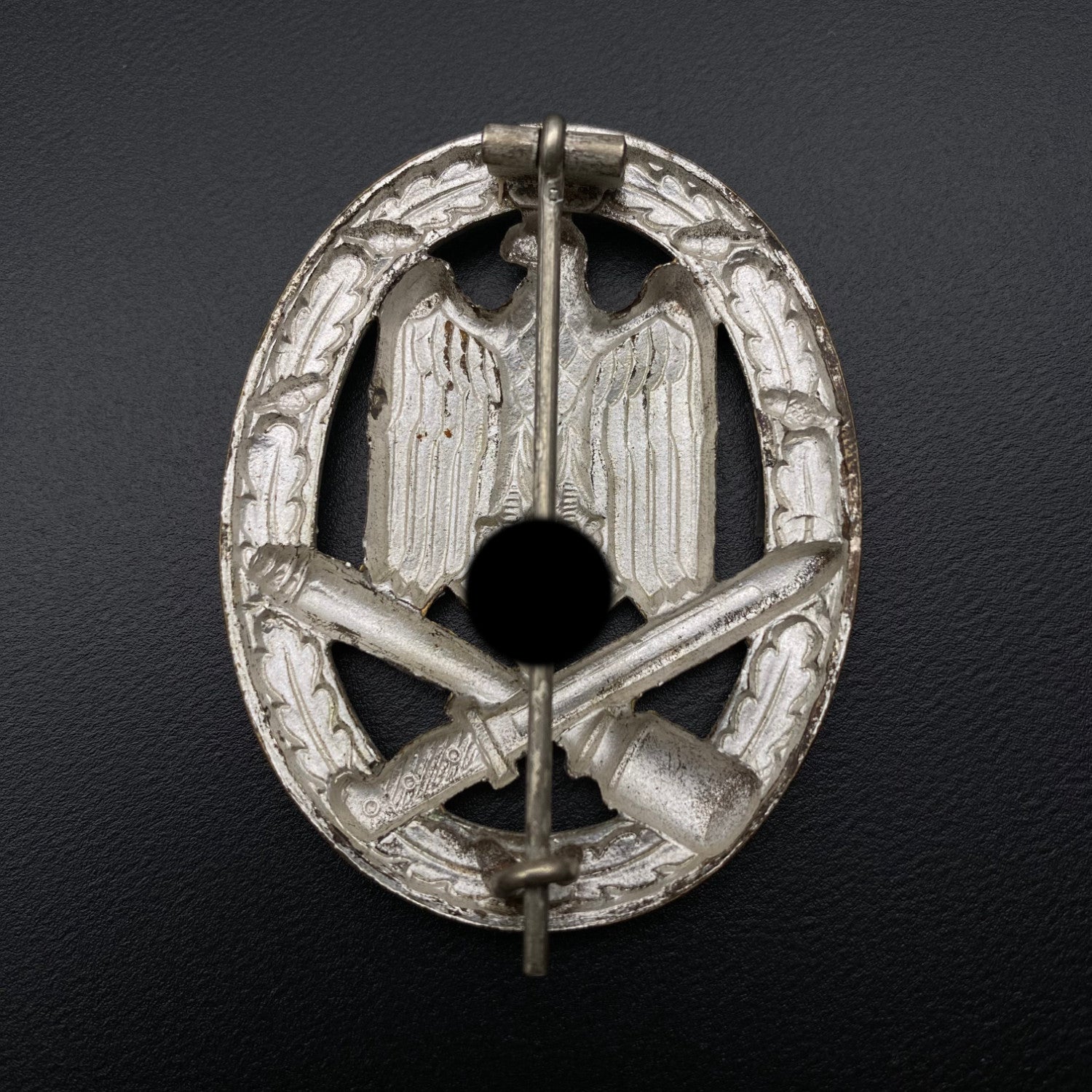Very rare and desirable early General Assault badge in tombak. Unknown maker, so called CupAl maker. Frosty white finish. Extremely beautiful assault badge in superb condition. Extremely rare piece!
