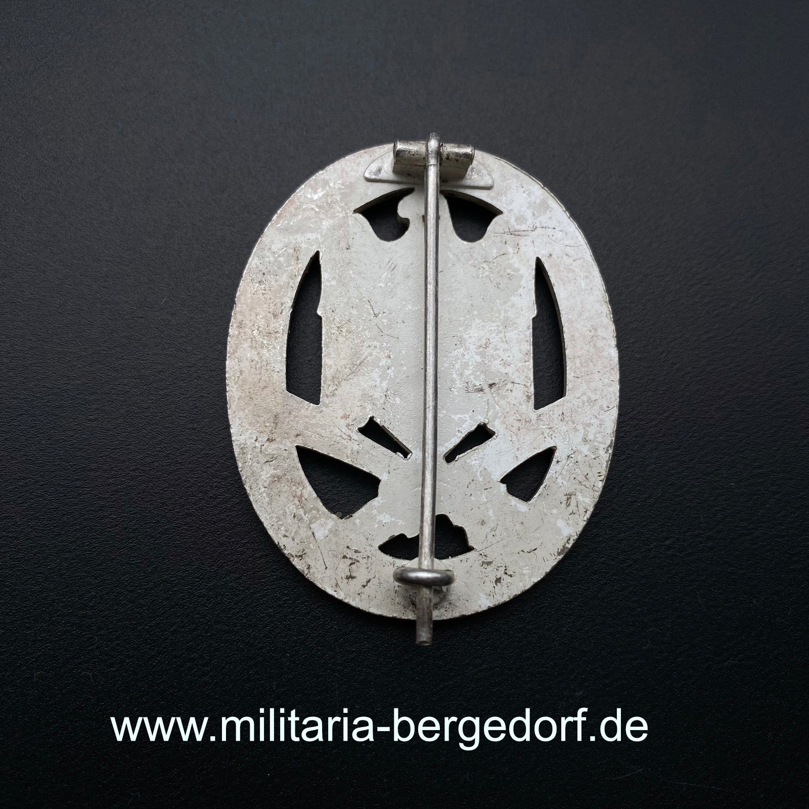 Seltenes "Allgemeines Sturmabzeichen". Sog. Halbmondvariante. Ungetragenes Prunkstück mit weißer, frostiger Versilberung. Ein Stück in solcher Qualität ist kaum am Markt zu finden.