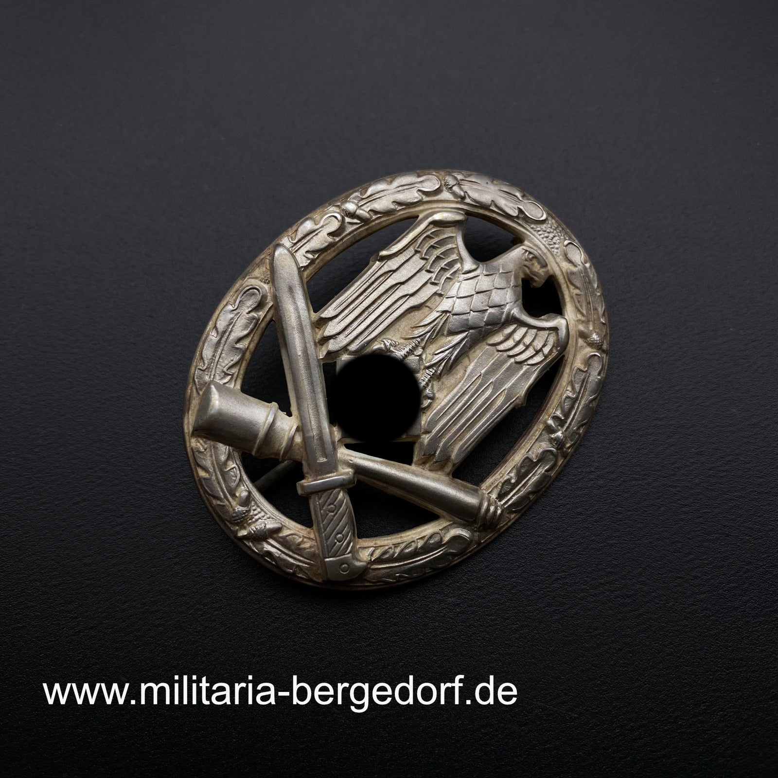Rare and desirable, early tombak made assault badge by R. Karneth, Gablonz. Slightly worn piece with superb, frosty silvering. Hard to find in such a pristine condition.