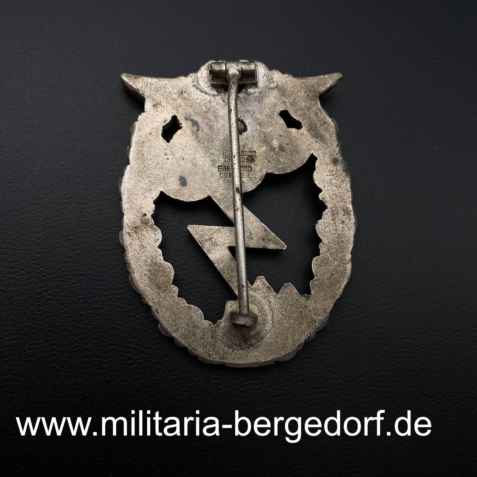 Ground Assault Badge of the LW. Maker marked Osang, Dresden. Only slightly worn piece with a gorgeous silvering and blueing. Rare variant with magnetic eagle! Very rare piece in superb condition.