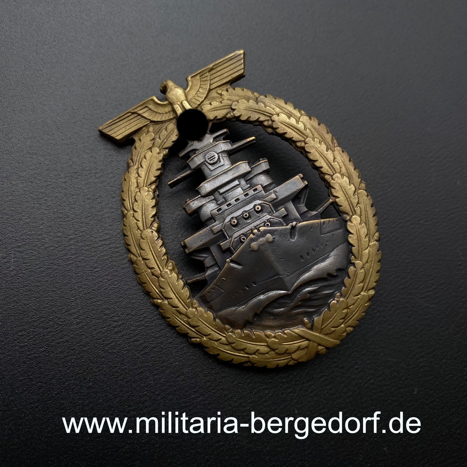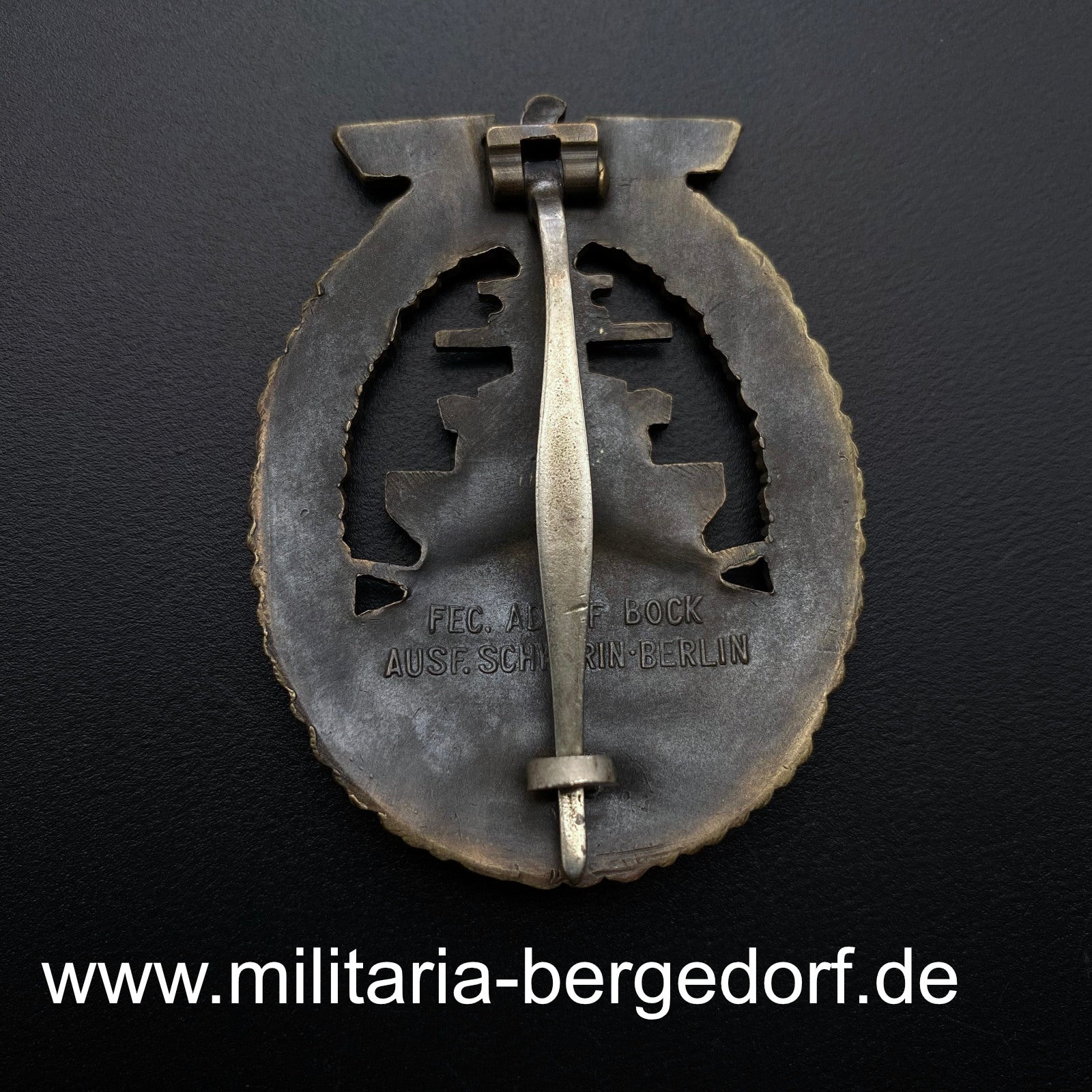 Very nice, only slightly worn early tombak made high seas fleet badge, maker marked Schwerin, Berlin. Very nice piece!