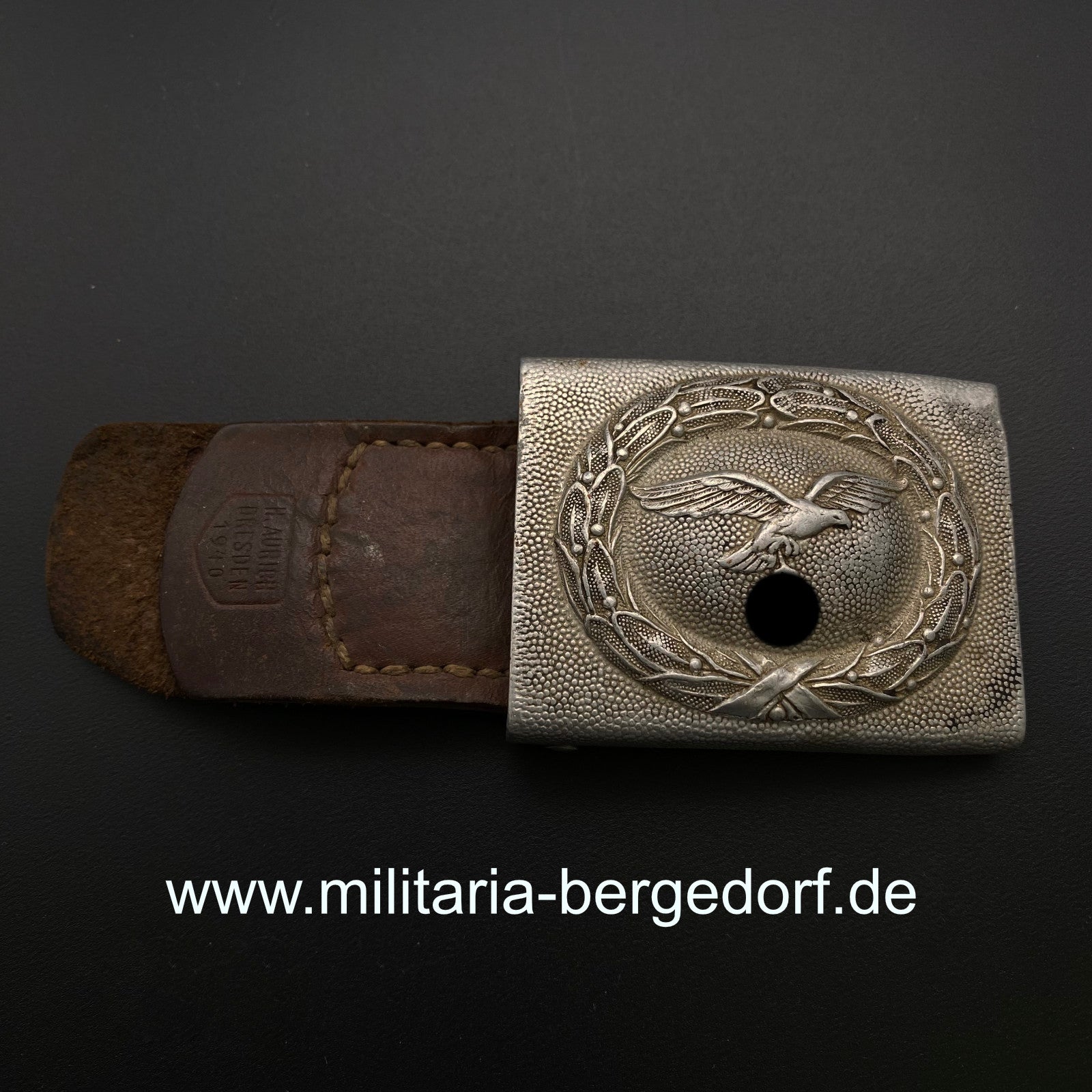 Frühes Koppelschloss der Luftwaffe. Aluminium mit Lederzunge, gestempelt HA39. Diese gestempelt Aurich 1949. Sehr schöner Zustand.
