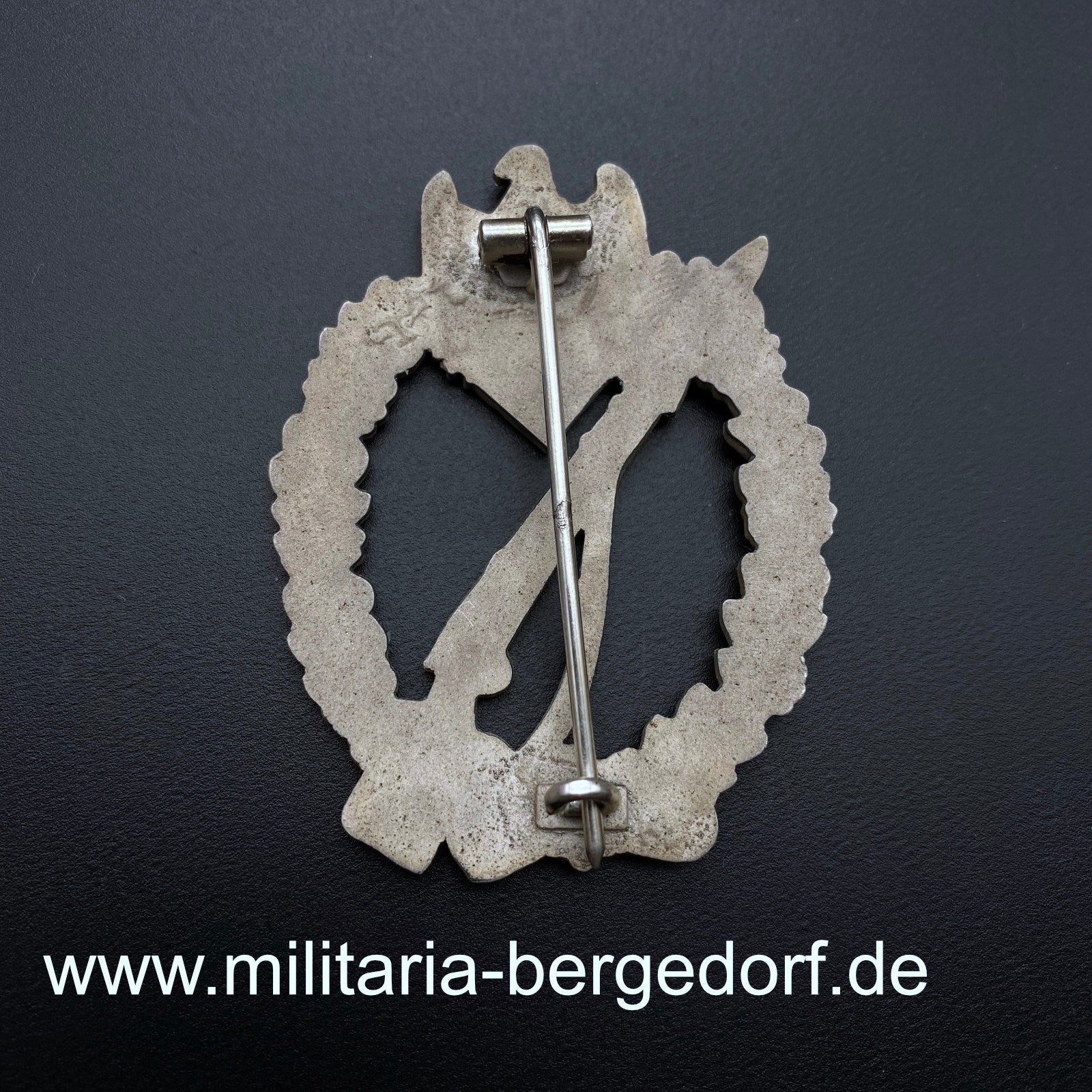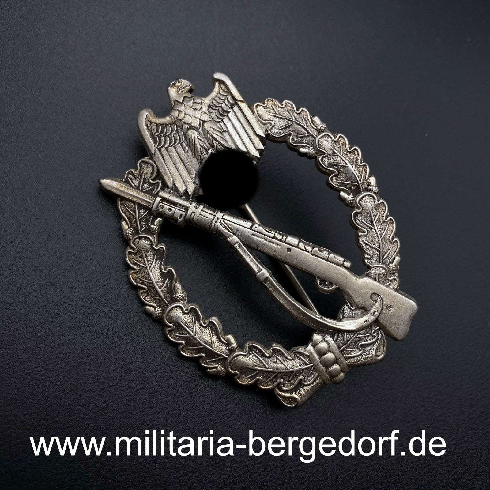 Unworn, near mint infantry assault badge in silver made by an unknown maker. White, frosty finish. Rare piece!