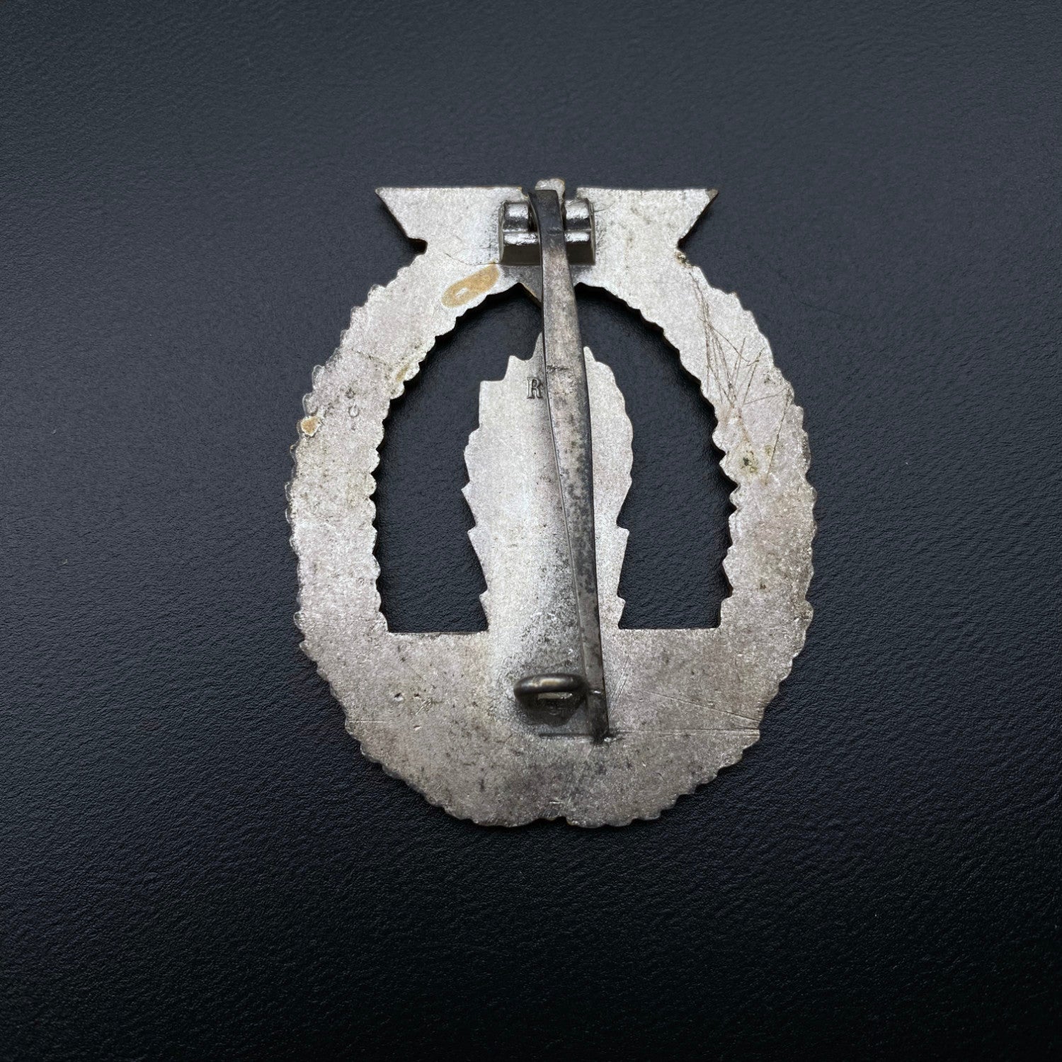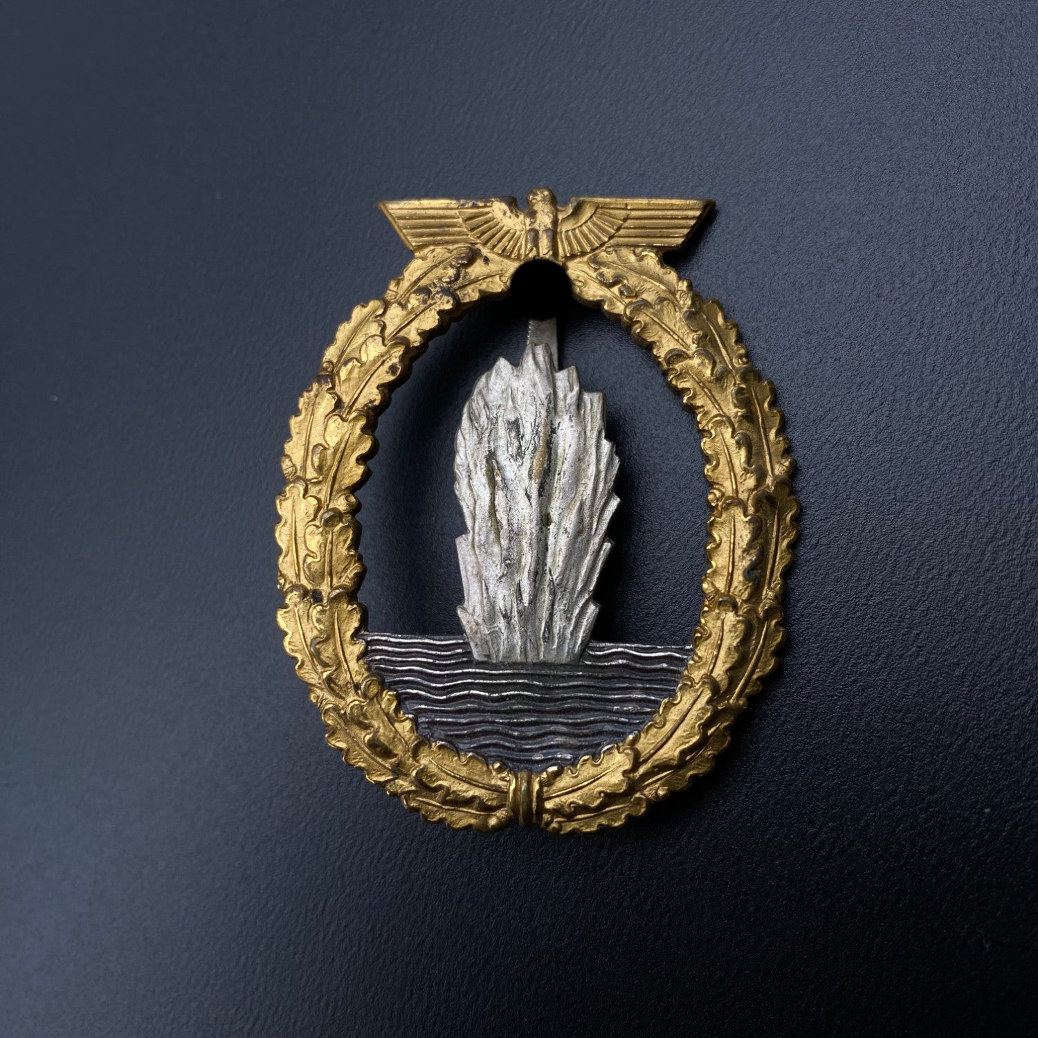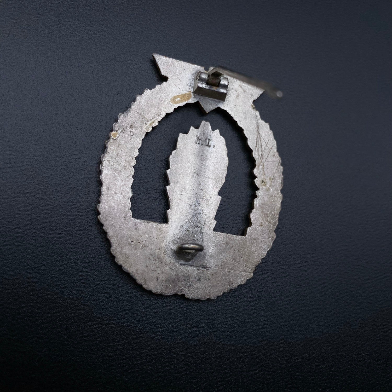 Very nice and early tombak Minesweeper Badge, maker marked R.K. Very early tombak piece with glowing fire gilding and perfect silvering. Superb condition. Much scarcer than its counterpart from Schwerin, Berlin.