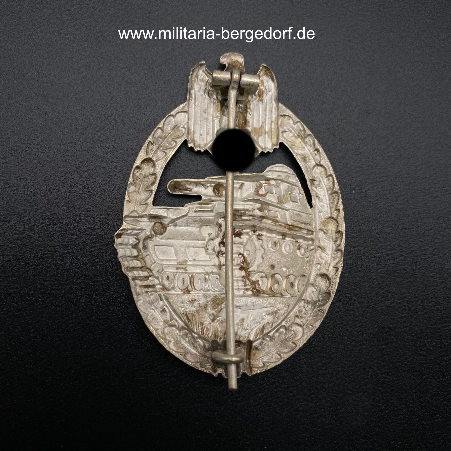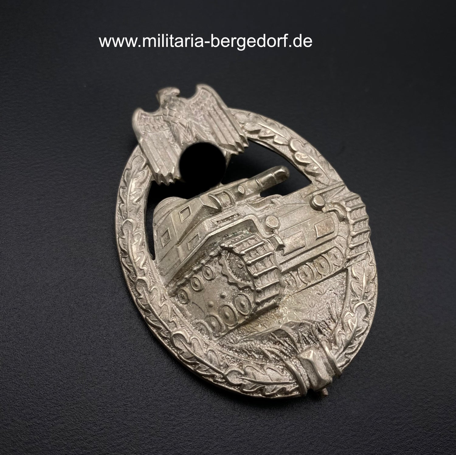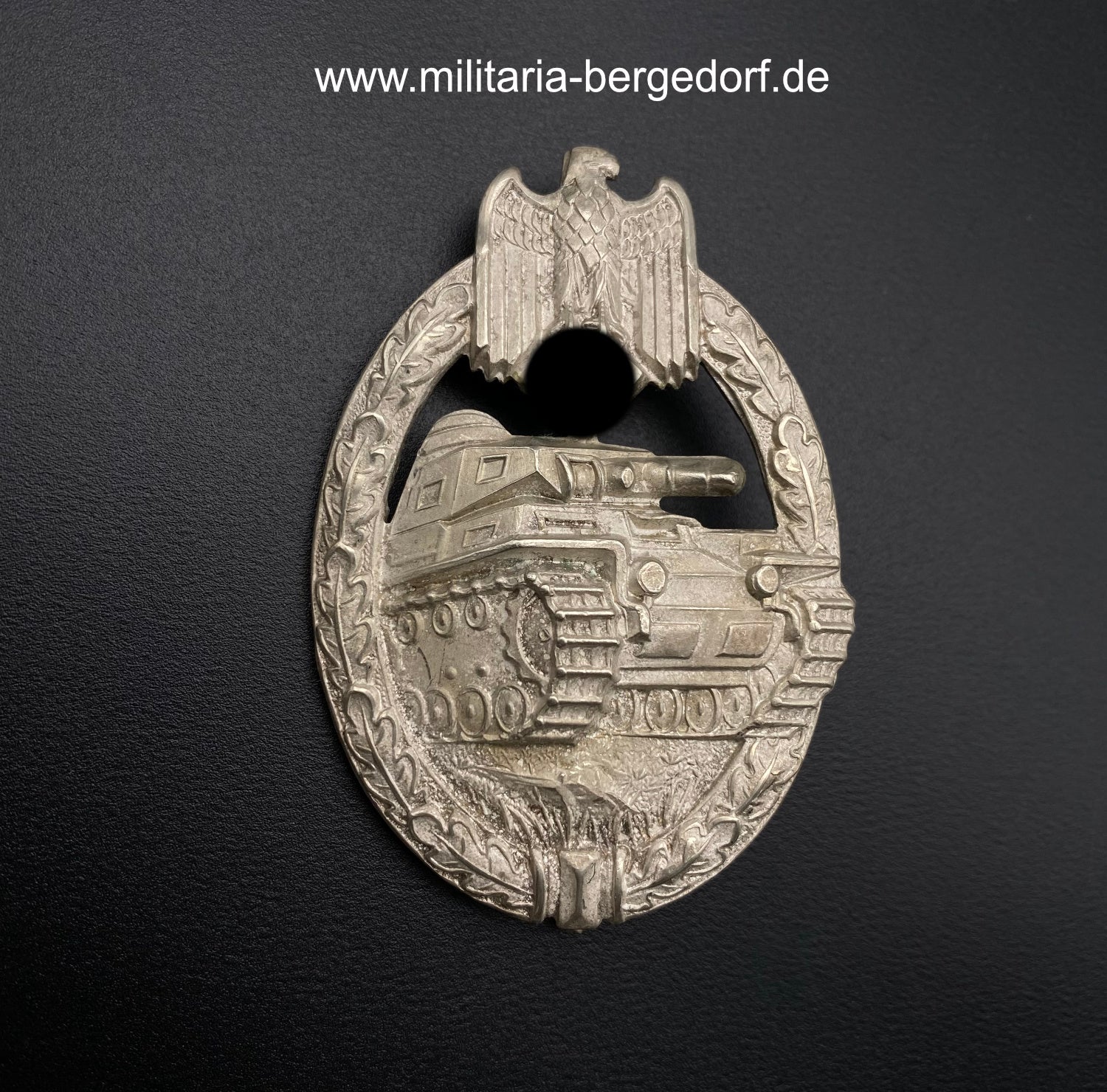 Extrem seltenes und gesuchtes Panzerkampfabzeichen des Herstellers Juncker, Berlin. Ganz frühe Neusilberfertigung in ungetragenem Bestzustand. Absolutes Prunkstück mit weißer, frostiger Versilberung. Die Kanten und das HK poliert. Ein absolutes Highlight für jede Sammlung! In 20 Jahren das erste Stück, welches ich in dieser Qualität gesehen habe.