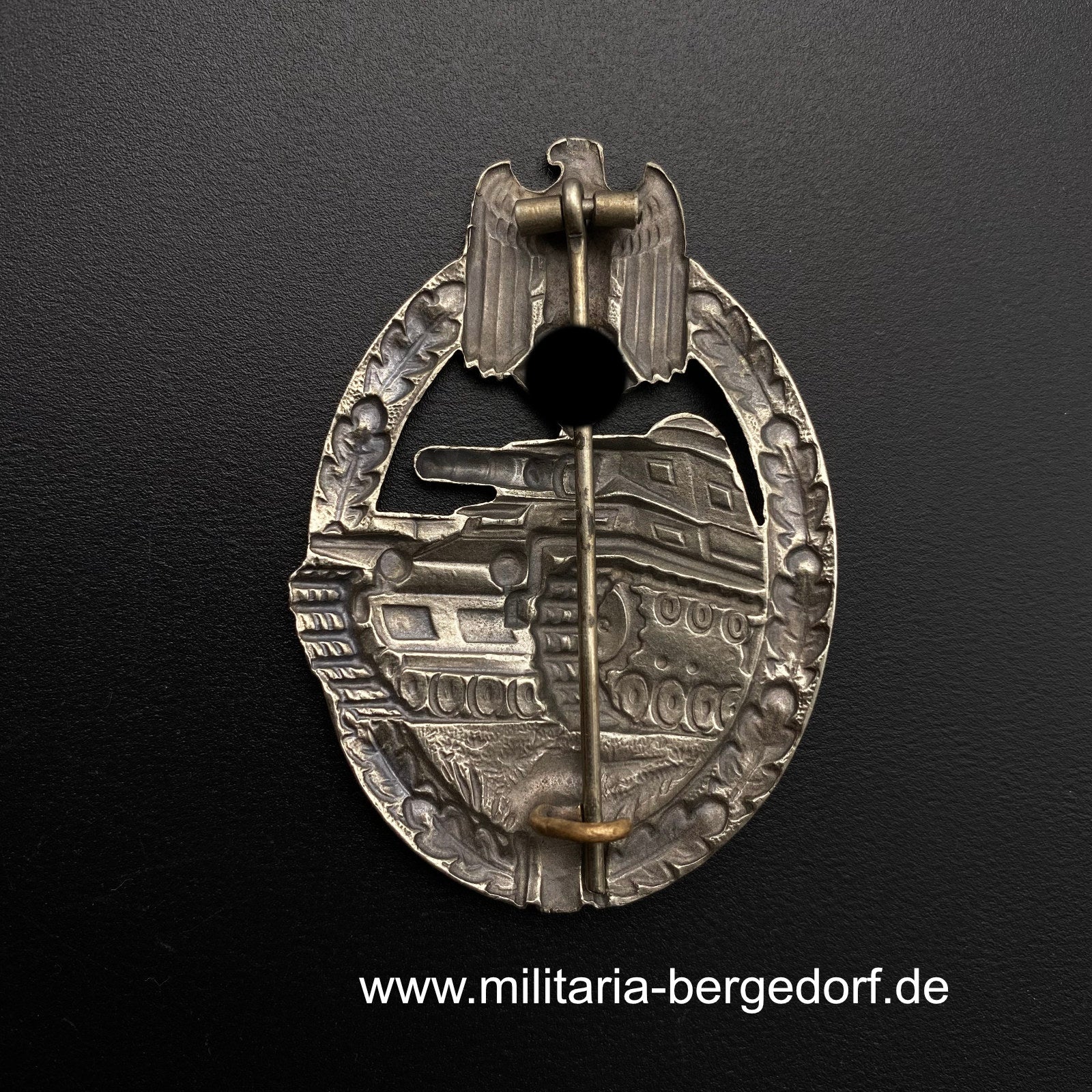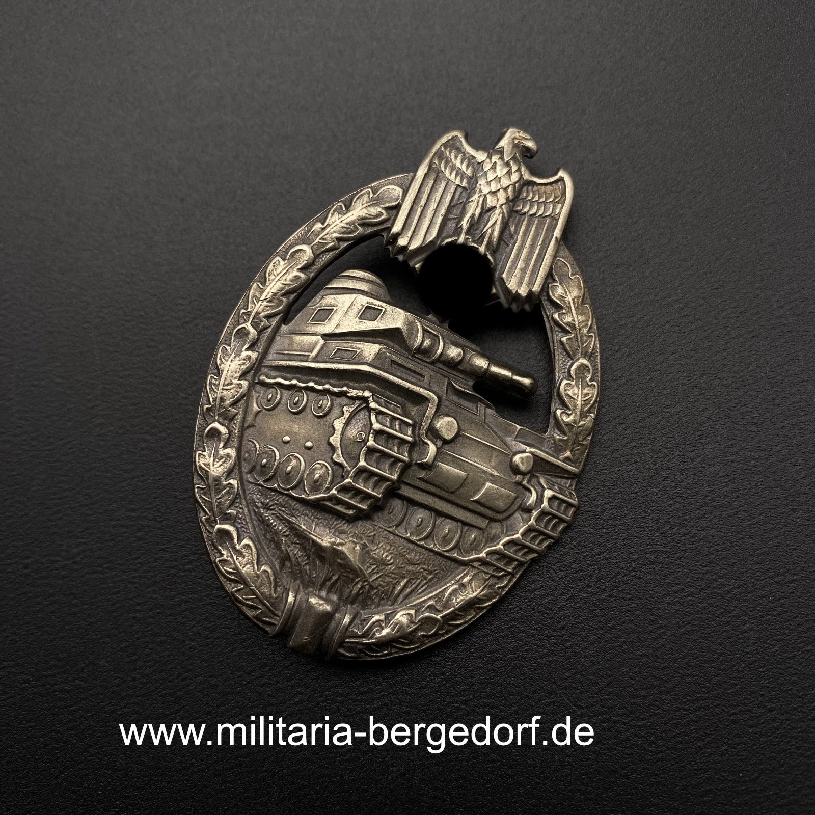 Frühestes und sehr gesuchtes Panzerkampfabzeichen des Herstellers Juncker aus Neusilber. So genannte 1.1.1. Variante. Eines der seltenensten Stücke und ein absolutes Highlight für jede Sammlung des Heeres.
