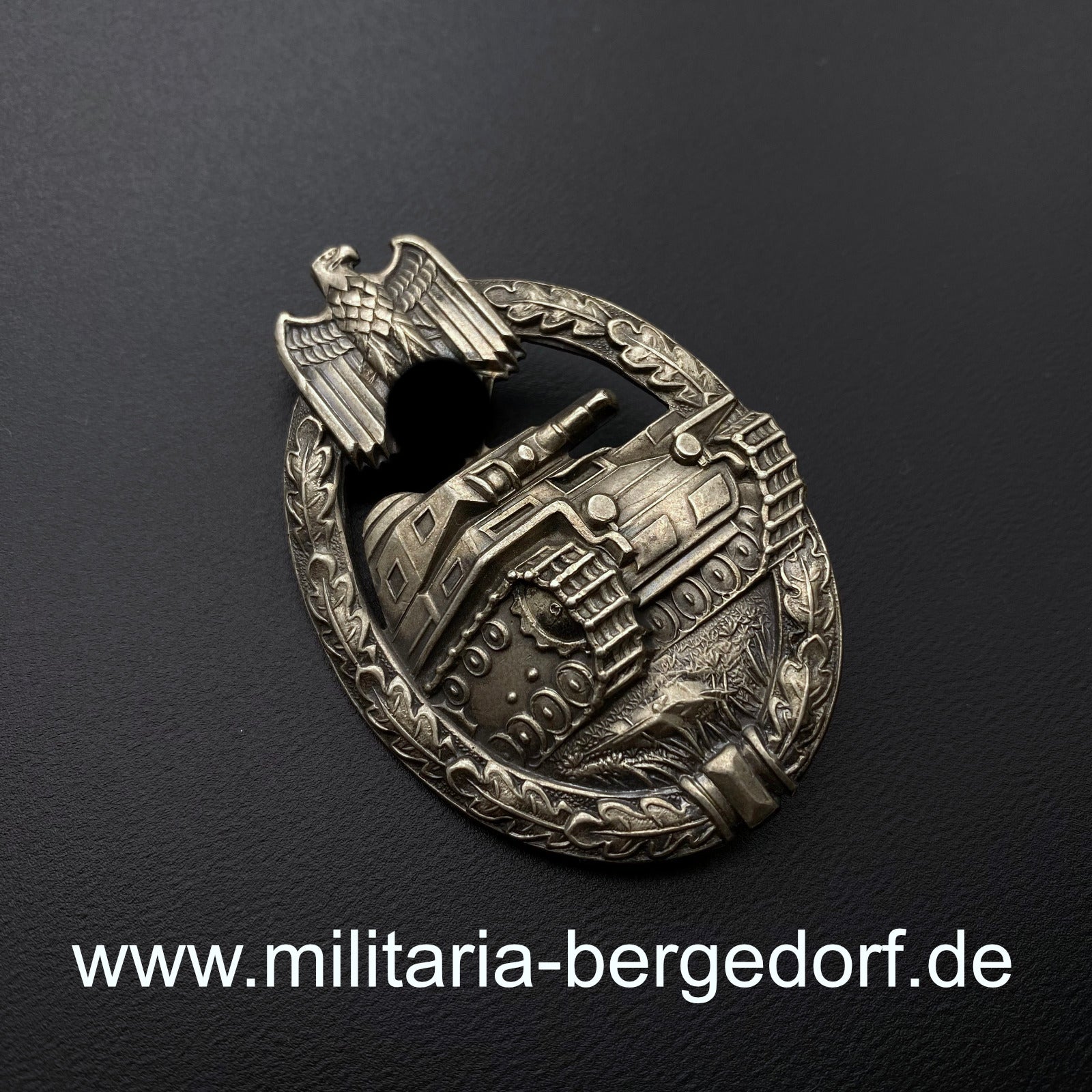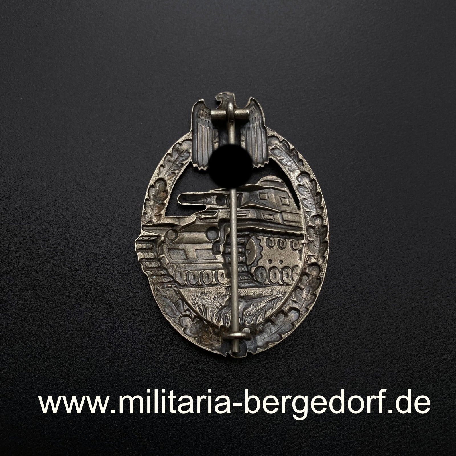 Very rare and desirable tank assault badge made by C.E. Juncker, Berlin. Slightly worn piece in outstanding condition. Early nickle-silver made piece, a must-have for any serious Heer/PAB collection!