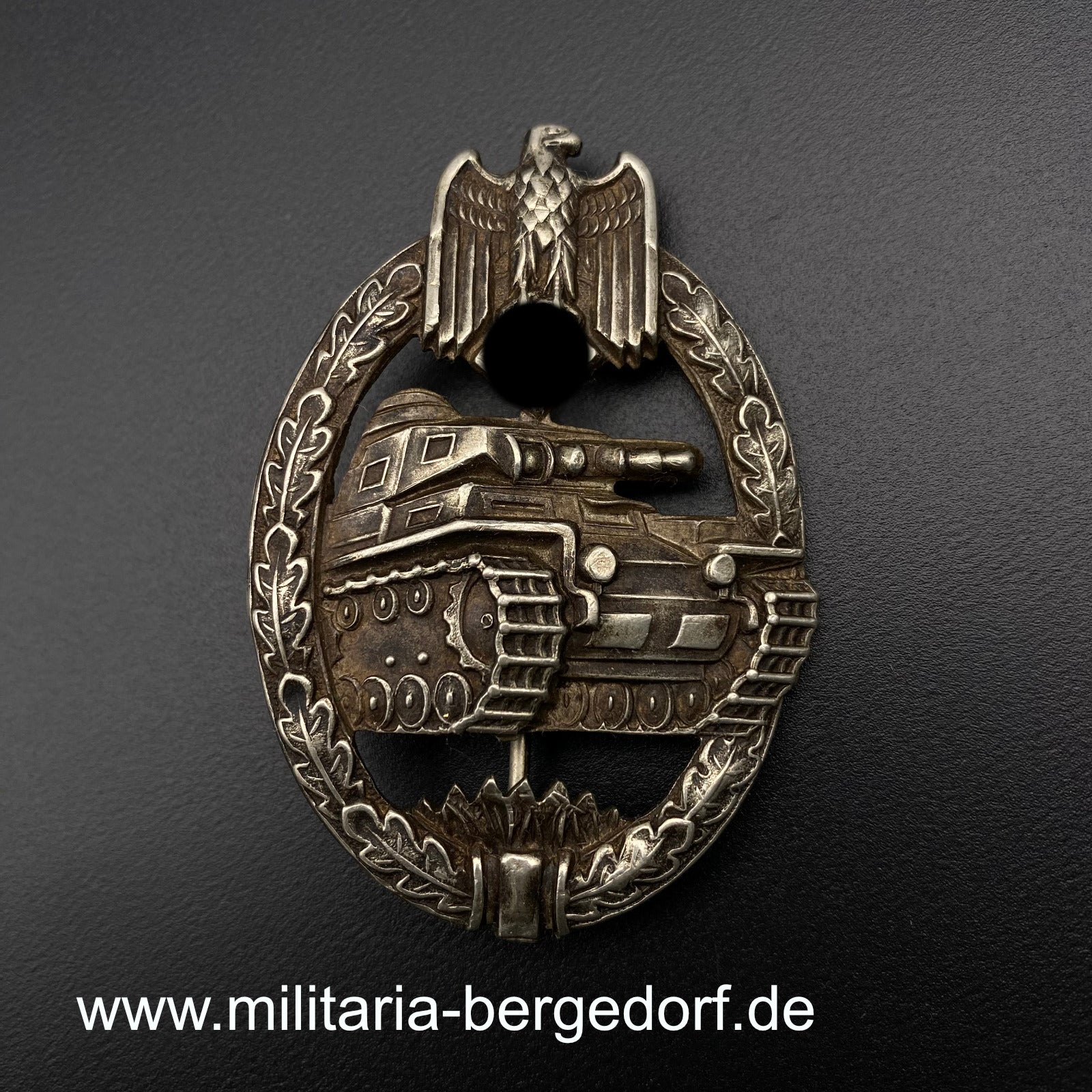 Extrem seltenes und gesuchtes Panzerkampfabzeichen in silber des Herstellers Juncker. Ein absolut spektakuläres, frühes double Cut-Out-Abzeichen aus Neusilber. In dieser wunderschönen Qualität das erste Abzeichen in dieser Form, welches ich erwerben konnte. Ein Highlight für jede PKA-Sammlung!