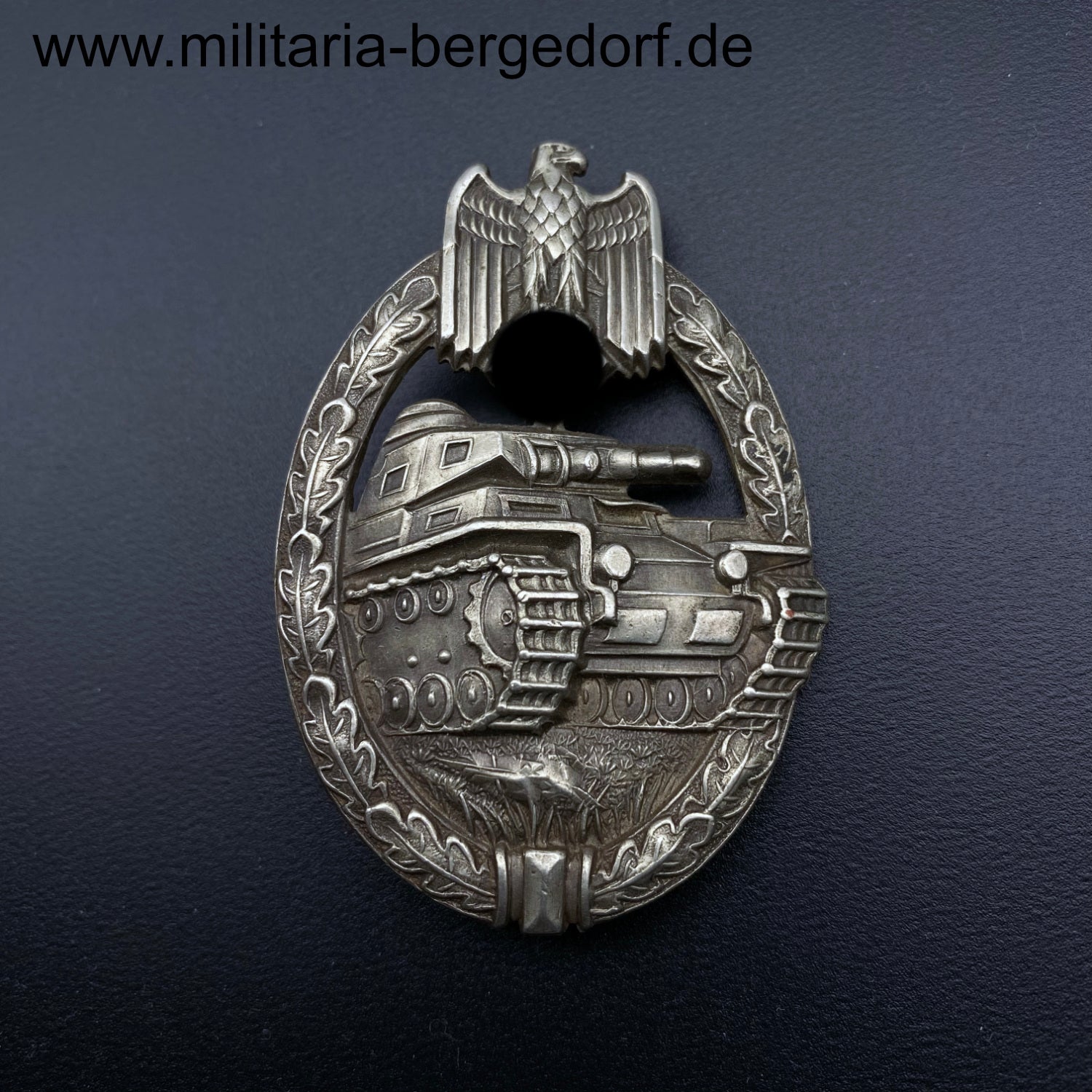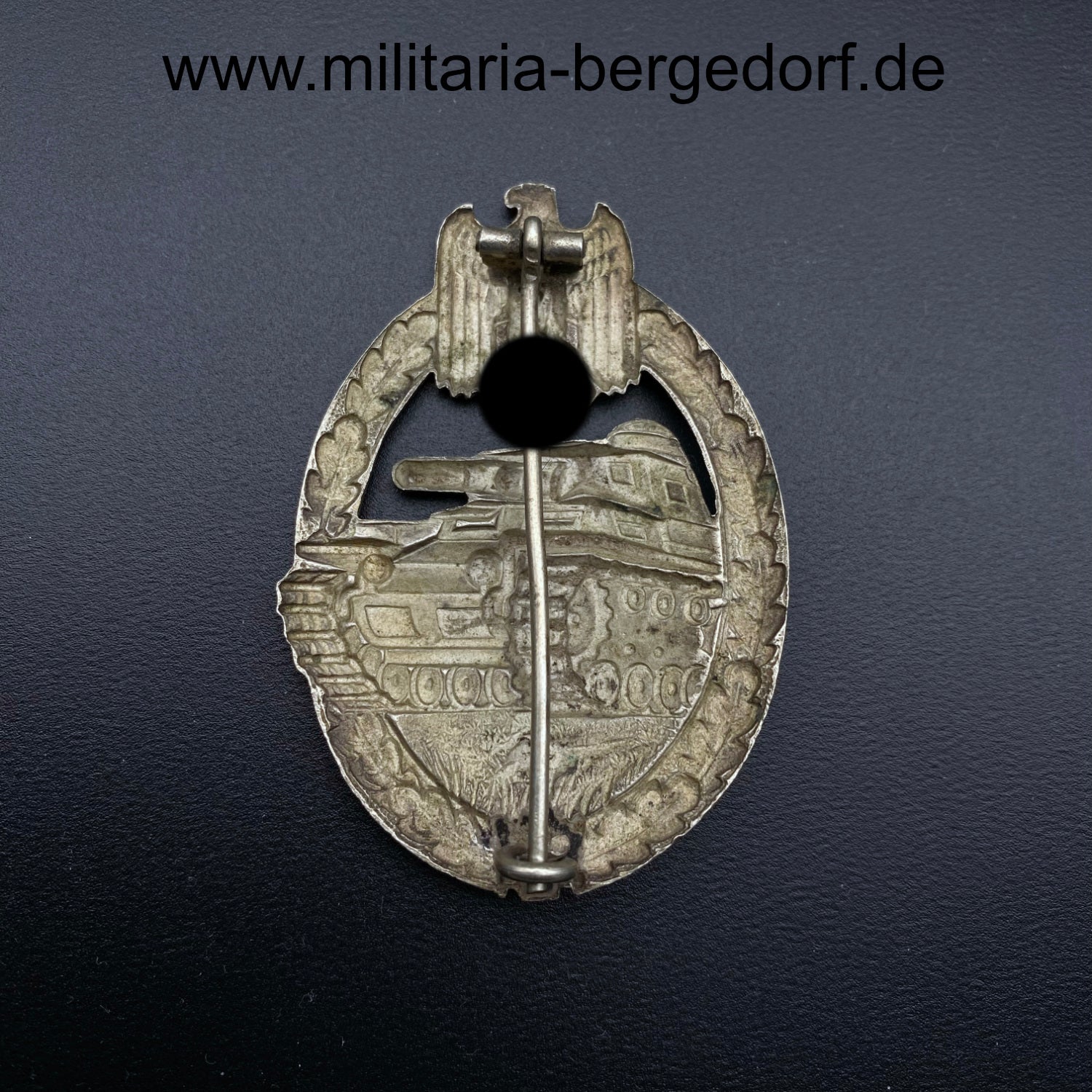 Extremely rare and desirable Tank Assault Badge in silver by the maker C.E. Juncker, Berlin. Scarce NS variant, extremely hard to find and one of the most desirable pieces you can find. Superb, only slightly worn condition. No damages, no repairs and an enrichment for every collection.