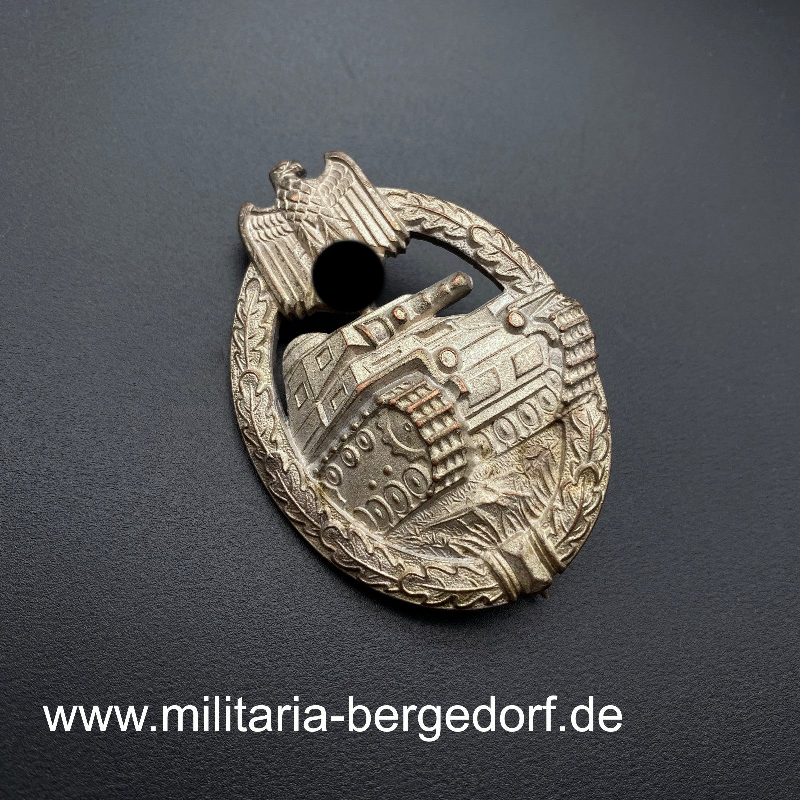 Very rare and desirable tank assault badge in silver. Rare Cupal piece in superb condition. Nice, frosty finish. The back shows some traces of storage. Super piece!