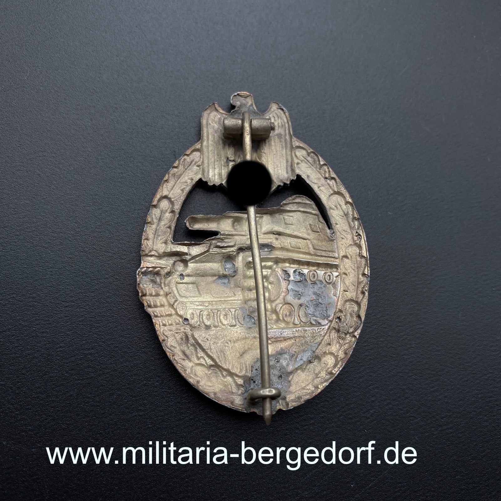 Seltenes Panzerkampfabzeichen des Herstellers Assmann. Gesuchte Cupal-Ausführung. Ungetragenes Stück mit beinahe vollständiger Versilberung. Die Rückseite mit Lagerspuren. Sehr schönes Stück!