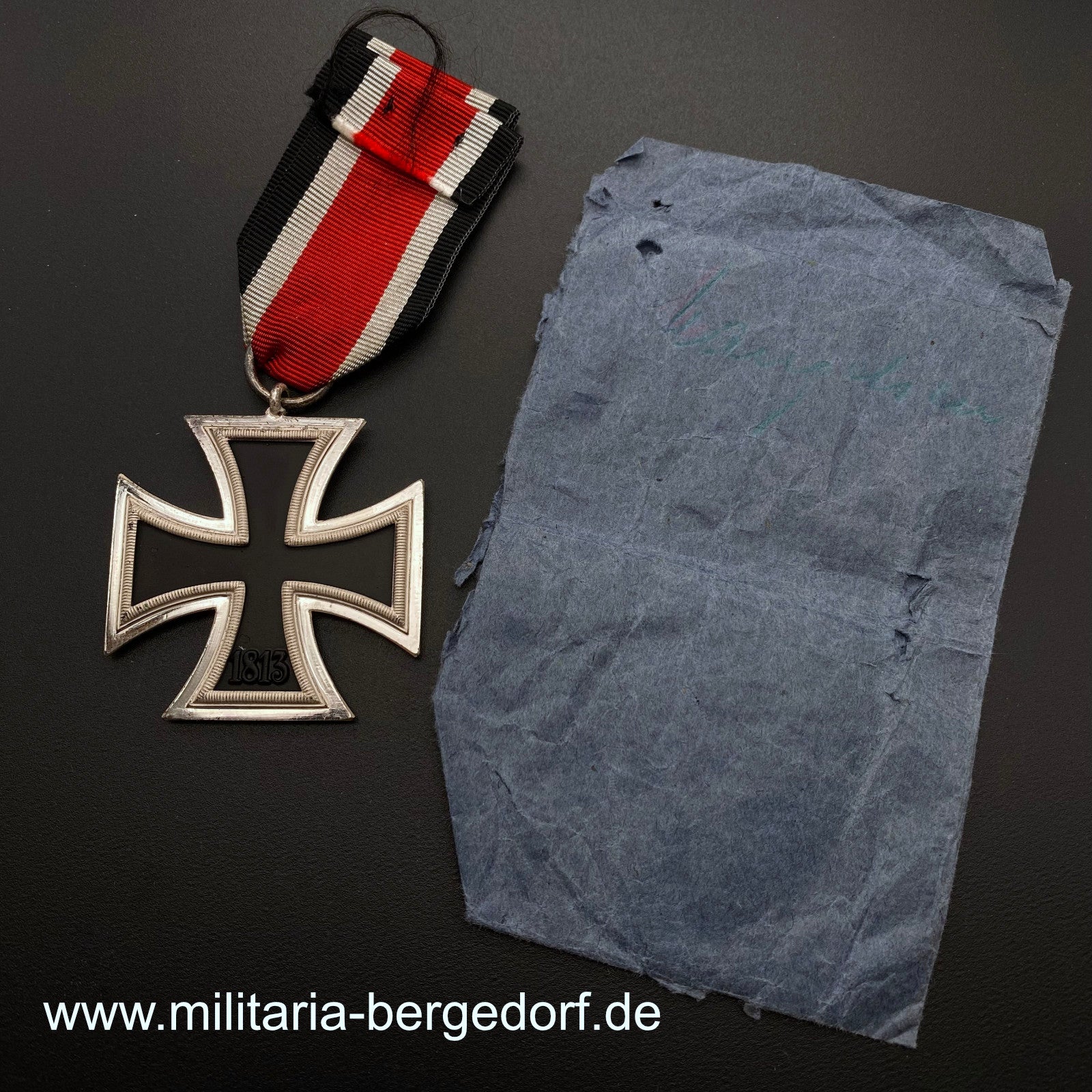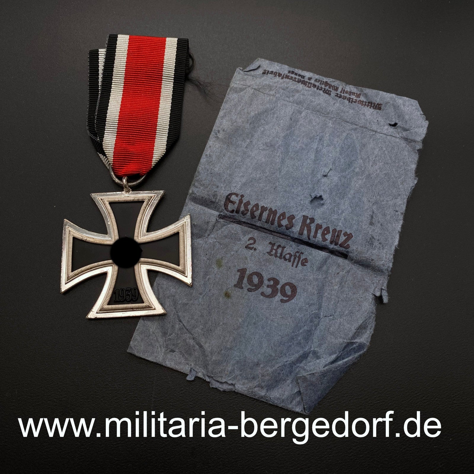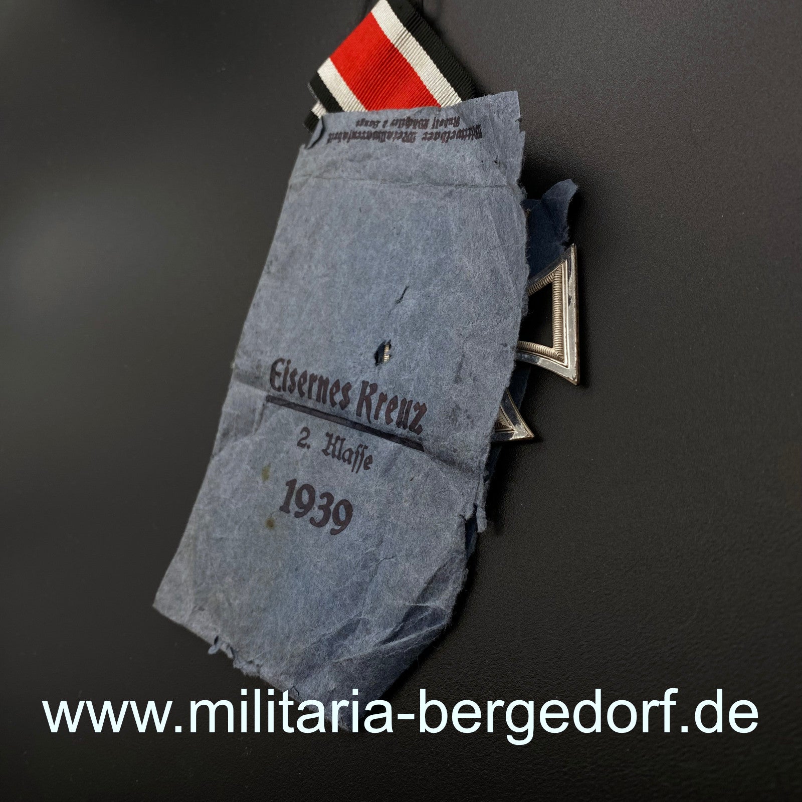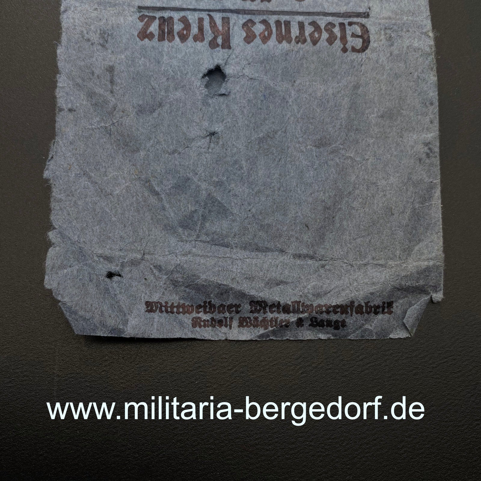 Extrem seltenes Set zum Eisernen Kreuz 2. Klasse. Das EK ein ungetragenes Prunkstück des Herstellers Wächter & Lange (unmarkiert), die extrem seltene und gesuchte Tüte in deutlich gebrauchtem Zustand. Extrem seltenes Set.