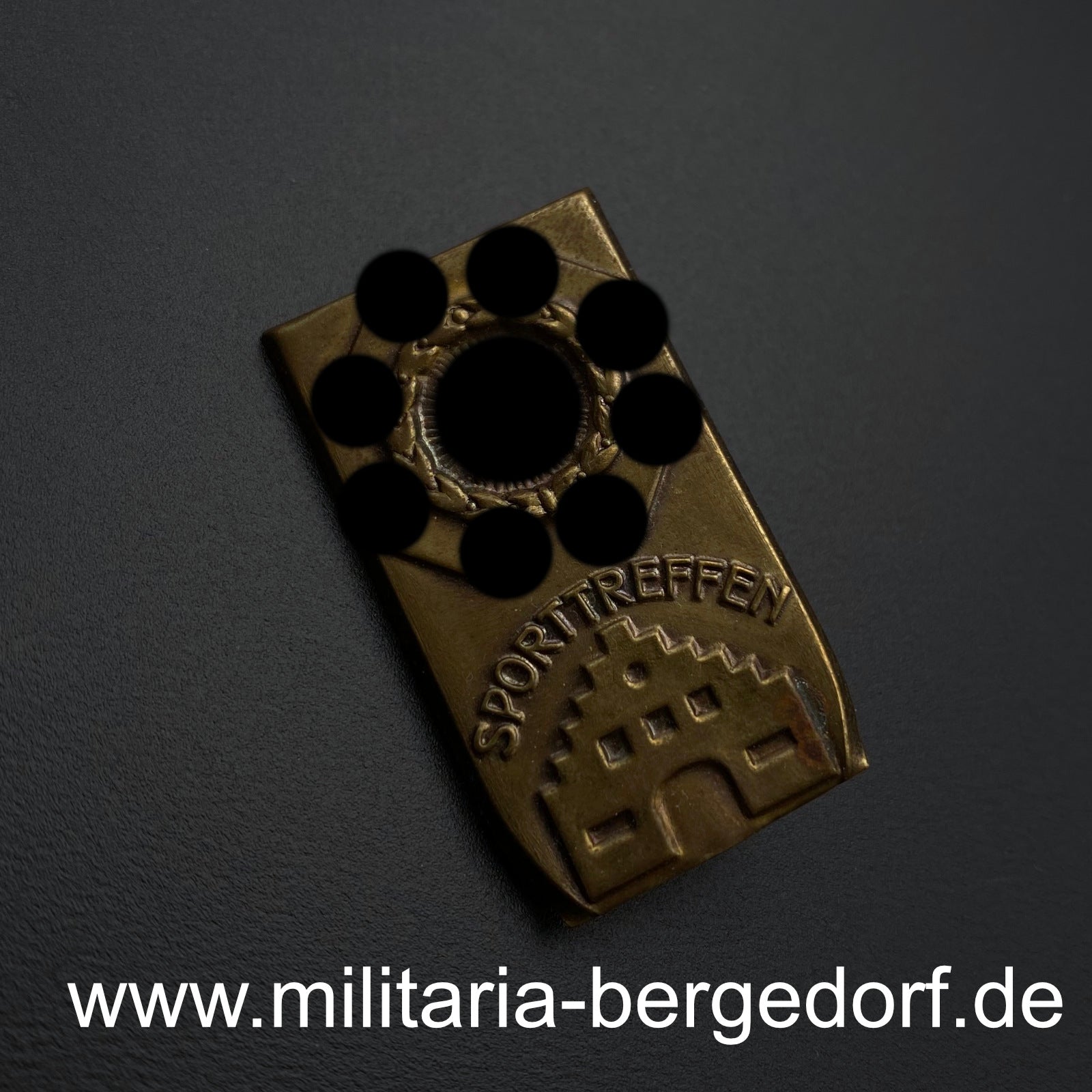 Gesuchtes Kleinabzeichen eines Elitesporttreffens. Dieses leicht modifiziert. Es sind nur eine handvoll von Abzeichens dieses Types bekannt, hierzu gibt es versch. Theorien. Ein extrem seltenes Abzeichen! Direkt aus einem kleinen Elitenachlass!