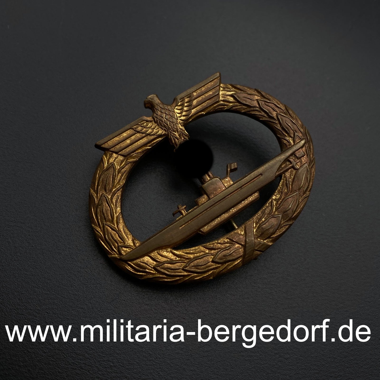 Ganz frühes U-Bootkriegsabzeichen der Herstellers O. Schickle. Seltenste und früheste Variante eines extrem seltenen U-Bootkriegsabzeichens. Sehr schöner, leicht getragener Zustand. Extrem seltenes und gesuchtes Buntmetallstück!