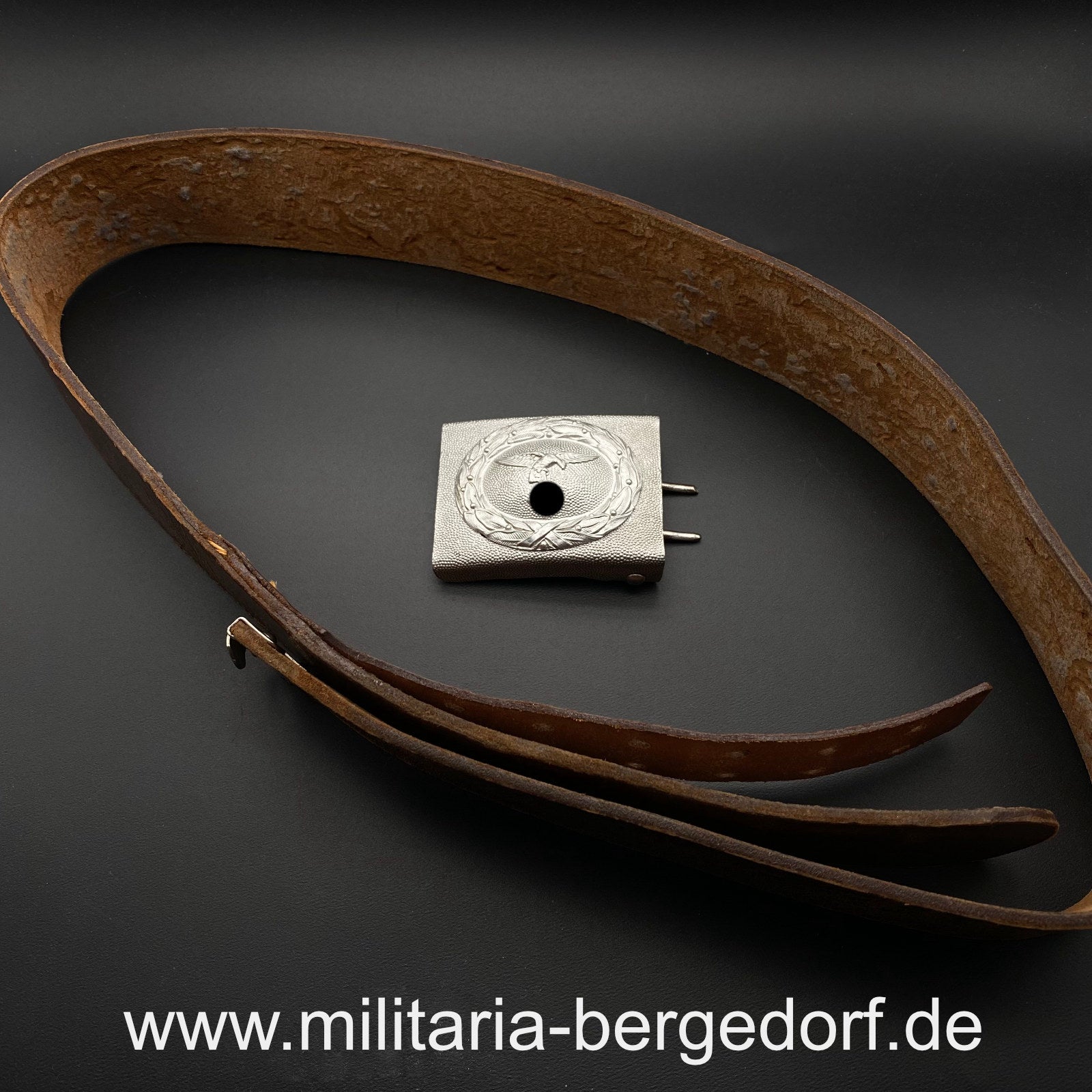 Early aluminum buckle+belt in superb condition. The belt with traces of storage, leather flexible and not flaky. Superb, early parade piece in perfect condition.